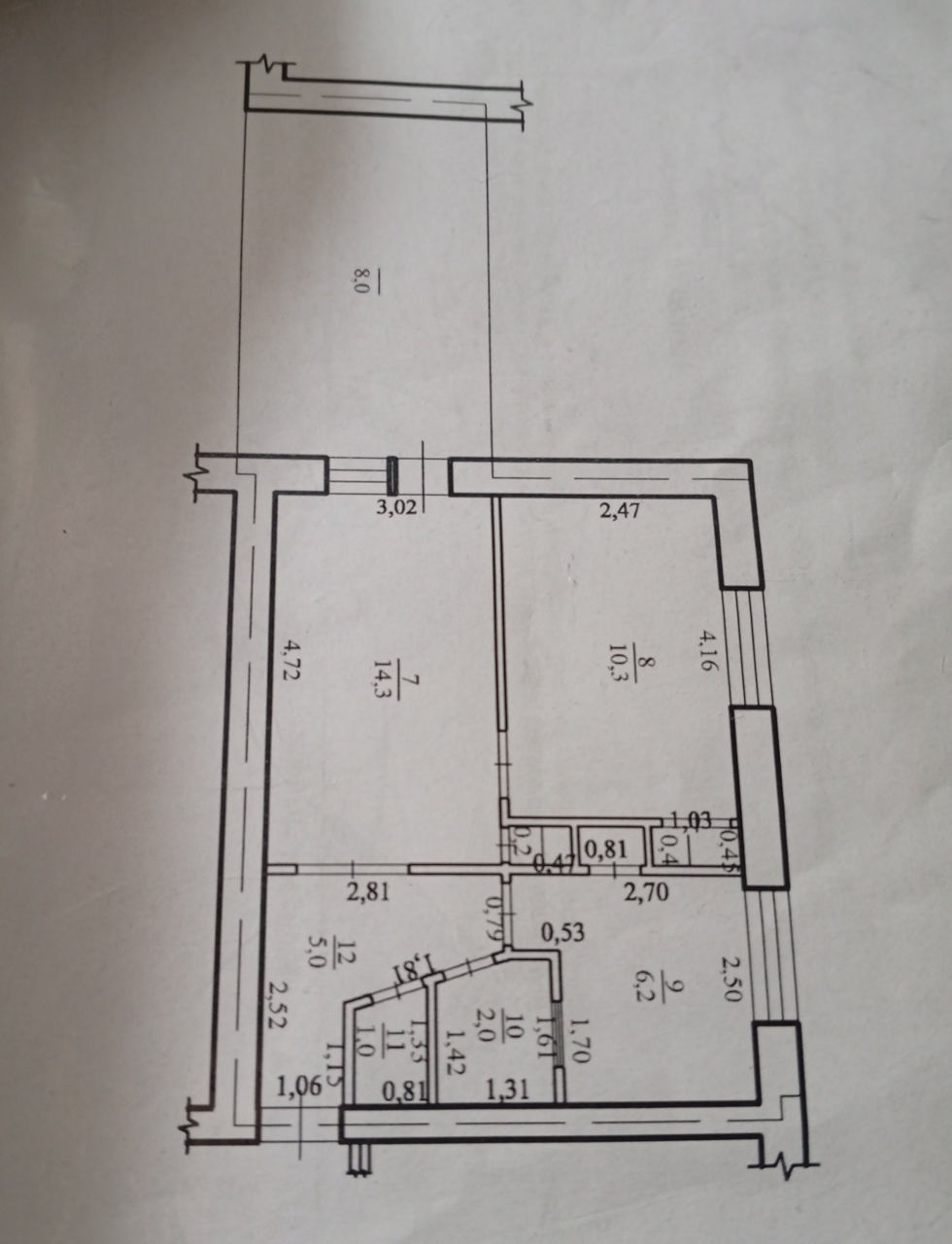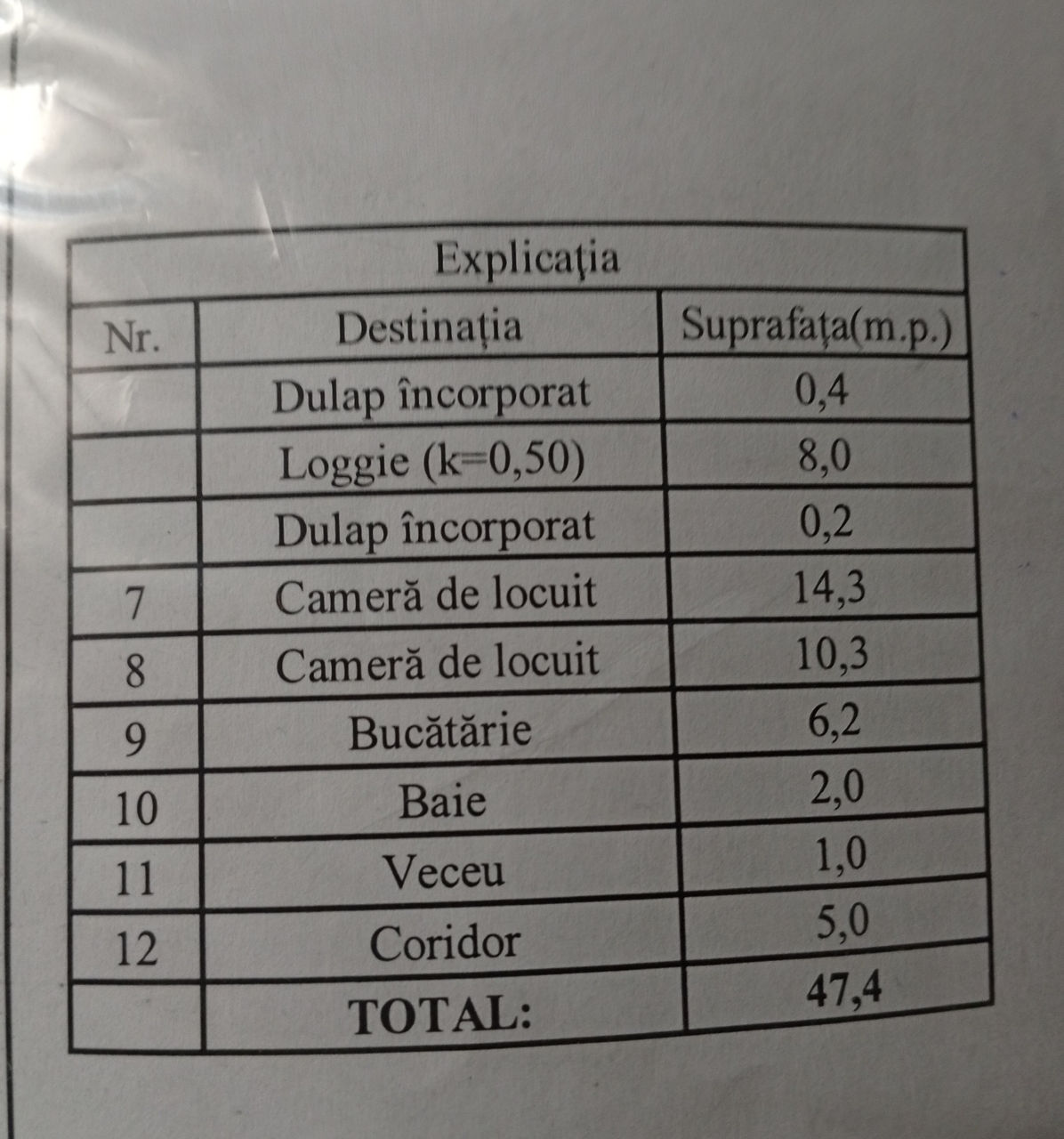 Общая площадь 47,4 м2, но фактическая 55,4 м2.