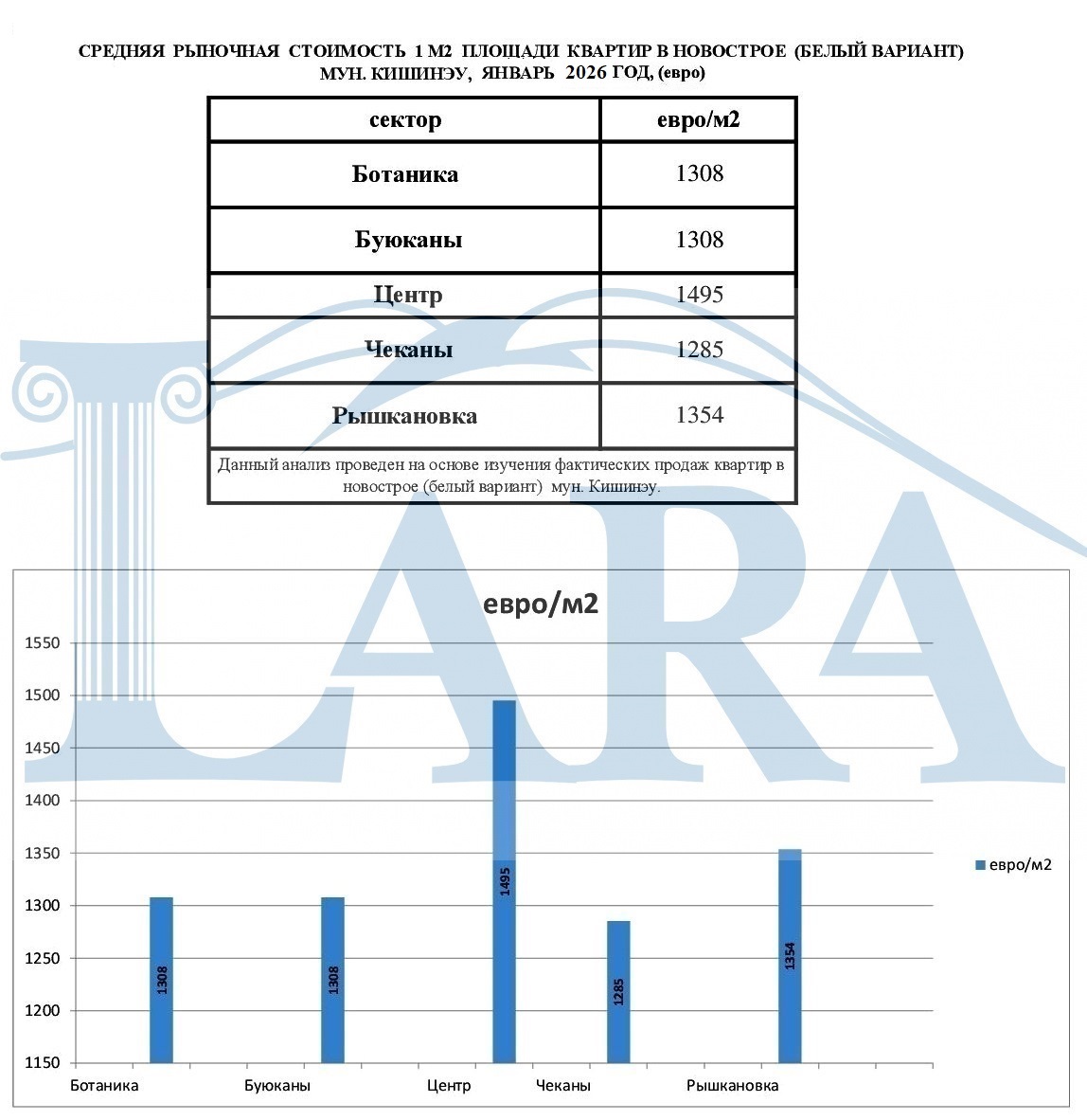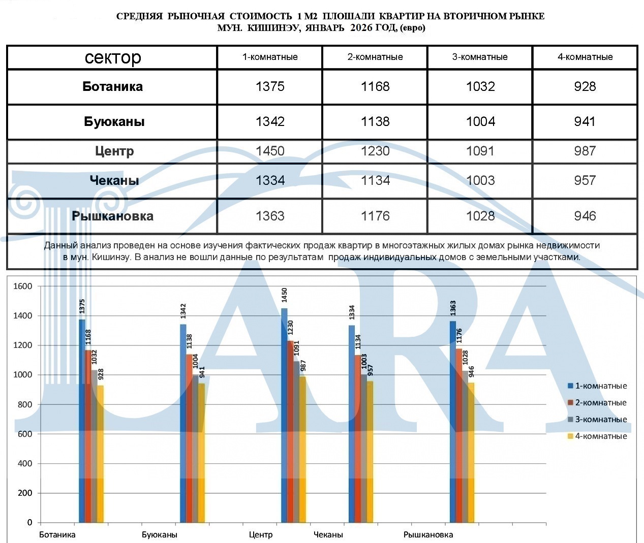 CРЕДНЯЯ РЫНОЧНАЯ СТОИМОСТЬ 1 М2 ПЛОЩАДИ КВАРТИР МУН. КИШИНЭУ, ЯНВАРЬ 2026 ГОД, (евро)